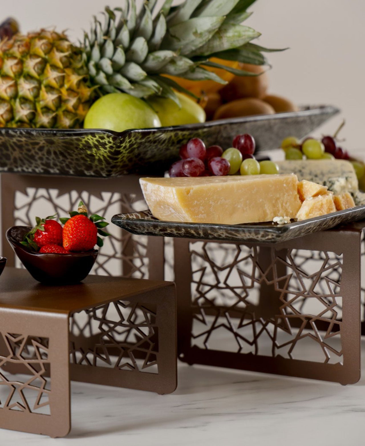 ¡Este set de alturas es perfecto para darle un toque único a tu buffet! Con su elegante acabado marrón y su material de cristal de alta calidad, te permite mostrar tus platos de manera atractiva y organizada. Su diseño funcional te ayuda a optimizar el espacio y ofrecer una presentación impresionante. Ideal para eventos y buffets, este set de alturas es todo lo que necesitas para impresionar a tus invitados. ¡No te lo puedes perder!